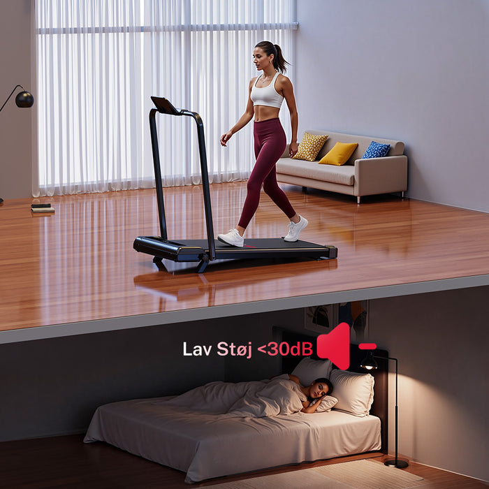Den er designet til fleksibel træning derhjemme og på kontoret og har en 5% hældning for at øge træningsintensiteten. Den giver dig mulighed for at indstille hastigheden fra 1-6 km/t til gang eller jogging.