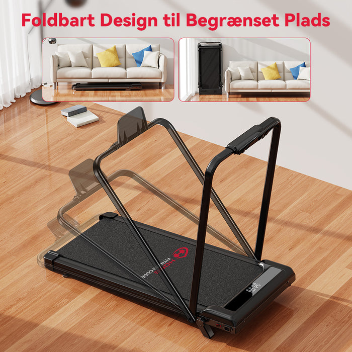Dens kompakte størrelse og det foldbare håndgreb gør det nemt at opbevare den under møbler eller op ad en væg, når den ikke er i brug – helt sikkert et løbebånd til begrænset plads.